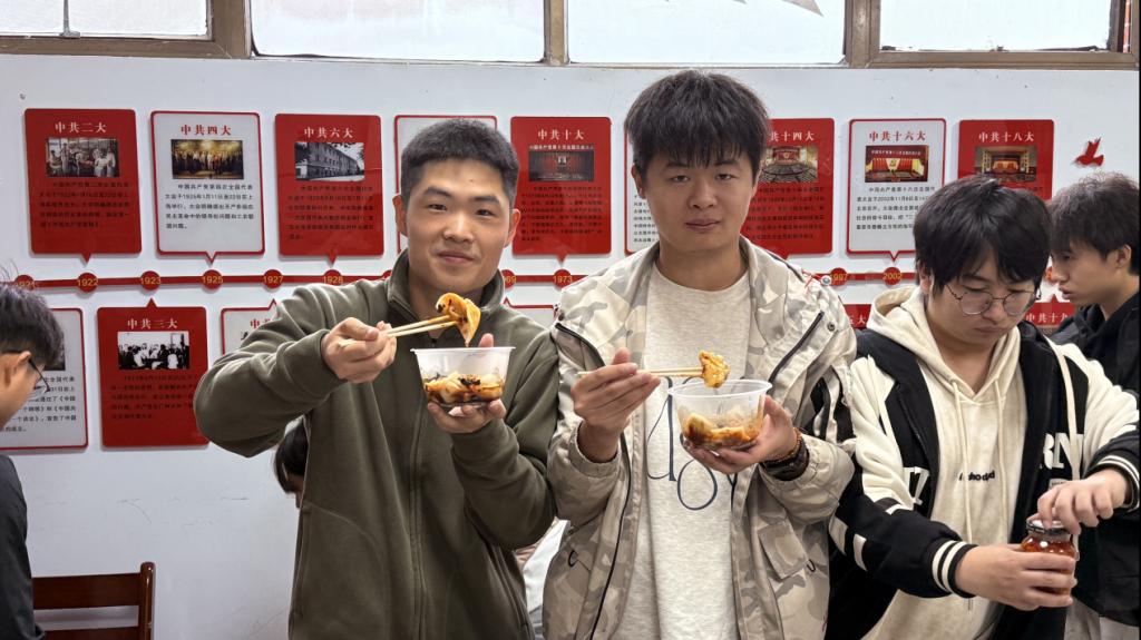 活动伊始,由黄鹏老师主持现场,带动全体氛围。值得一提的是,桌上热气腾腾的饺子均由芦鹏副书记亲手包制,每一枚饺子都承载着经济与管理学院对同学们的深切关怀。用餐过程中,胡卫东书记、芦鹏副书记与辅导员老师们主动与少数民族学生代表亲切交谈,详细询问大家的学习进度、生活适应情况及实际需求,耐心解答学业困惑与生活难题,让同学们在异乡感受到“家”的温暖。