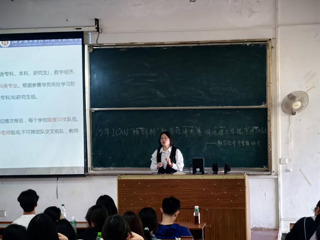 本网消息 4月10日下午4点半,2025年ICAN大学生创新创业大赛“精创杯”全国数字经济决策创新挑战赛(下文简称ICAN数字经济大赛)宣传动员会在X3-304教室举行。这是在tyc7111cc太阳成集团全面完善学科竞赛管理制度背景下、首次举办该赛事的宣传动员活动。该活动由经管院数字经济与智能协会承办,全院70余学生、以及数字经济专业负责人和班主任参加了本次宣传动员会。