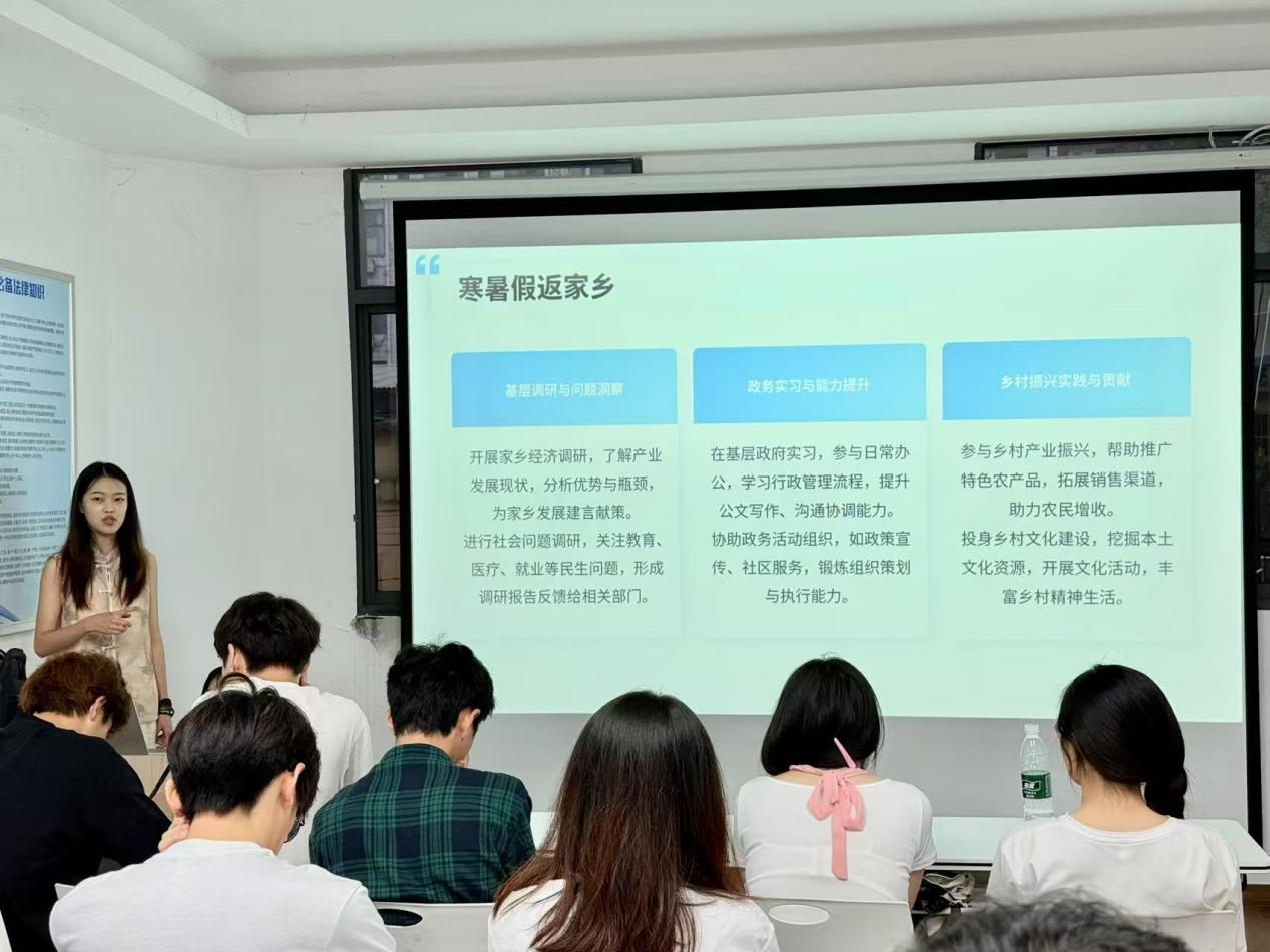 本次座谈会以“劳以启智,动以润心”为主题,围绕大学生志愿活动展开深入交流。主讲人首先强调了青年志愿者在社会公益事业中的重要作用,鼓励同学们秉持“志在心中、愿在行动”的理念,积极参与志愿服务。会上,实践部成员详细介绍了志愿活动的类型,包括寒暑假“返家乡”班级志愿活动、暑期“三下乡”社会实践、班级志愿活动及每月创文活动等。同时,会议还就志愿服务的规范要求进行说明,如着装规范、时间观念、文明用语等,并对志愿服务的时长要求及组织管理作了进一步讲解。