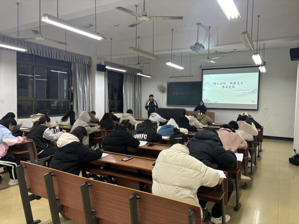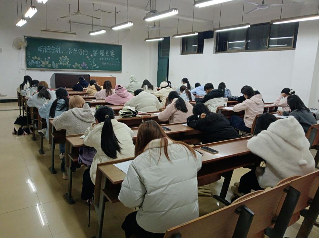 活动以试卷作答的形式开展。竞赛试卷题目涵盖传统礼仪知识、诚信典故、现代行为规范、感恩相关经典故事,涉及明礼、诚信、感恩的法律法规等内容,多维度检验同学们对“明礼守信,知恩笃行”知识的掌握程度。考场上,同学们沉着冷静、认真答题,结合所学知识与自身对明礼守信、知恩笃行的理解,在试卷上认真书写答案。