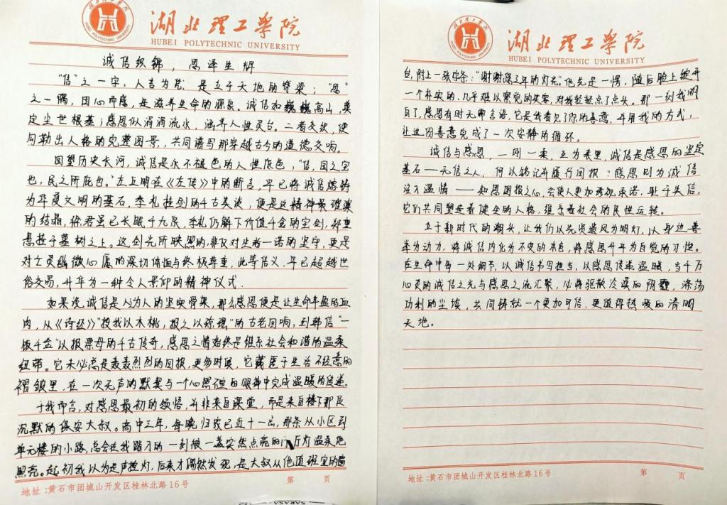 活动启动后,为便于交流讨论,学院专门组建了活动线上群聊,为同学们搭建起探讨“诚信”与“感恩”文化内涵的平台。同学们在群内踊跃发言,分享身边践行诚信、传递感恩的动人故事,在充分交流与学习的基础上,大家热情投入创作。本次征文不设文体限制,鼓励学生以散文、随笔、书信等多种形式表达真情实感,活动中涌现出一批主题鲜明、情感真挚的优秀作品。