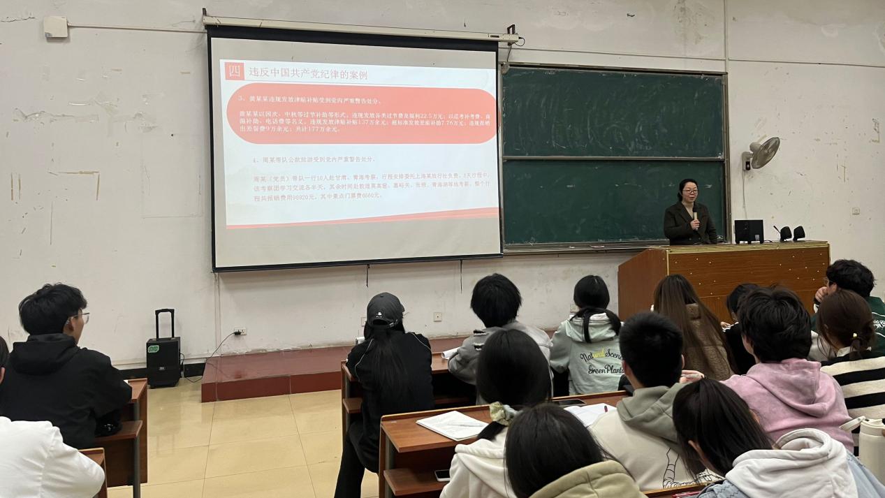 芦鹏同志围绕“守纪律讲规矩的重要性”、“纪律和规矩的内涵”、“党的纪律”、“违反中国共产党纪律的案例”、“《中国共产党纪律处分条例》”五个方面深入讲解。其中,芦鹏同志结合生活中点滴小事,说明每一项纪律的具体要求和底线红线,使广大入党积极分子清晰认识到党的纪律的严肃性和全面性,明白在思想上、行动上与党保持高度一致的重要性。
