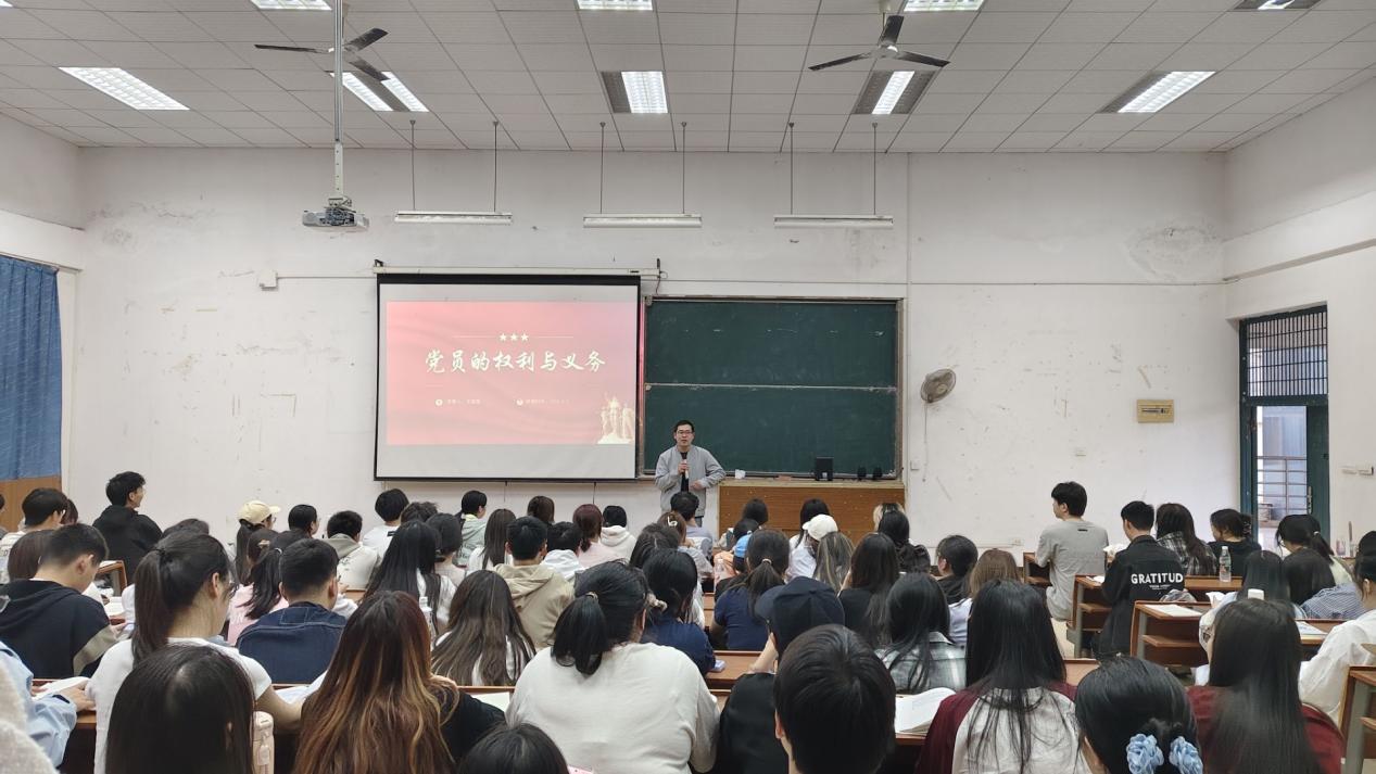 接着,汪国超同志对党员权利与义务进行了详细阐释,他指出,党员权利不仅是个人参与党内事务的保障,更是推动党内民主建设的重要力量;党员义务则是每一位党员对党和人民应尽的责任,是保持党的先进性和纯洁性的关键所在。为了让理论知识更具针对性和实用性,汪国超同志还结合实际学生案例,分析了在日常工作和生活中,党员应如何正确行使权利、认真履行义务。