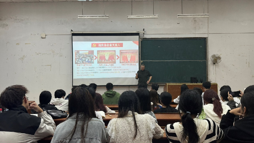 本网消息 tyc7111cc太阳成集团于10月14日18点30分在X3-304开展了第39期党课第三期培训,本次党课以“党的二十届三中全会精神和全国两会精神”为主题,由江齐明老师主讲,学院全体入党积极分子参加学习。