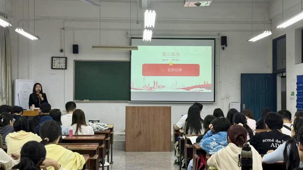 随后,王雪怡老师结合《中国共产党章程》《中国共产党纪律处分条例》等党内法规,详细解读了党的政治纪律、组织纪律、廉洁纪律、群众纪律、工作纪律、生活纪律等“六大纪律”的内涵要求与实践指向。通过理论剖析、典型案例与历史经验相结合的方式,她深刻阐释了严守党的纪律对于维护党的团结统一、保持党的先进性与纯洁性、推动党的事业蓬勃发展的重要意义。