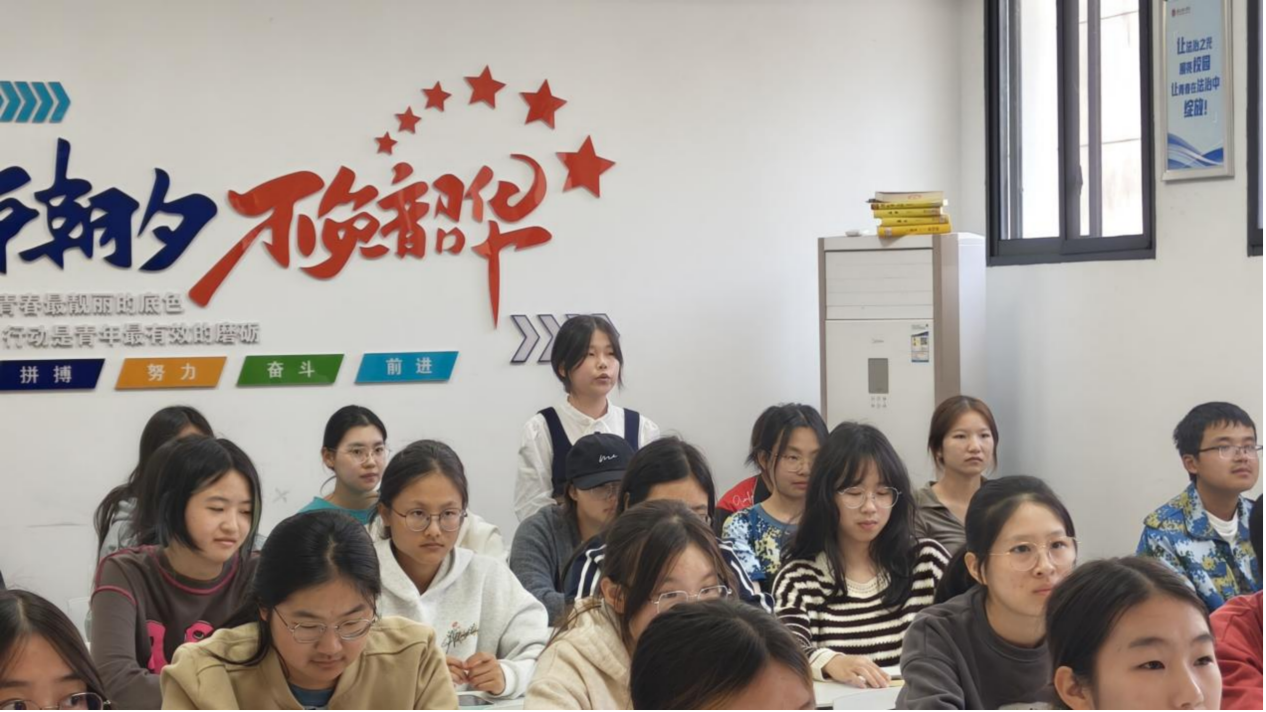 宣讲活动现场,黄凤同学从全会召开的时代背景切入,系统解读了“十四五”时期的历史性成就与“十五五”时期的战略部署。她结合“统筹教育强国、科技强国、人才强国建设”的核心要求,用“国家发展蓝图就是青年奋斗指南”的生动表述,引导同学们深刻认识青年与时代的紧密联系,号召大家将个人理想融入国家发展大局。